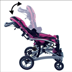 Độ nghiêng của ghế xe đẩy sẽ được canh chọn theo mức độ kiểm soát đầu cổ và thân của Trẻ. Trẻ càng nặng thì mức độ nghiêng càng nhiều.