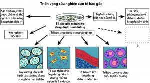 Vì vậy, dùng tế bào gốc trong điều trị chính là đưa vào cơ thể các tế bào tiềm năng để tạo ra các loại tế bào mới, mô mới bổ sung hoặc thay thế cho các tế bào và mô của cơ quan đã bị tổn thương hoặc đã mất chức năng. Nghiên cứu về lĩnh vực tế bào gốc hứa hẹn mang lại ứng dụng rộng lớn trong điều trị các bệnh về thần kinh (bệnh Parkinson, Huntington, ALS…), tim mạch, tiểu đường, tổn thương da, chấn thương cột sống, ung thư, bệnh tự miễn…