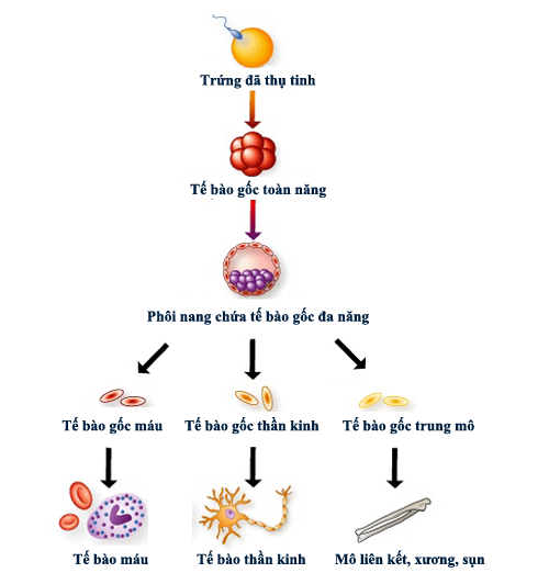 Cơ thể chúng ta có đến hơn 200 loại tế bào khác nhau thực hiện các chức năng cụ thể, ví dụ như tế bào da, tế bào cơ, tế bào máu, tế bào thần kinh… Tất cả những loại tế bào này đều hình thành từ một vốn tế bào gốc ở giai đoạn phát triển sớm nhất của phôi.